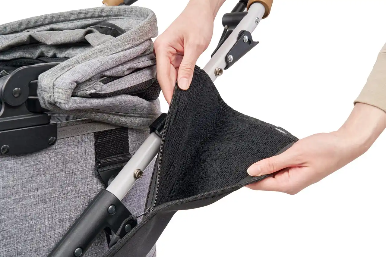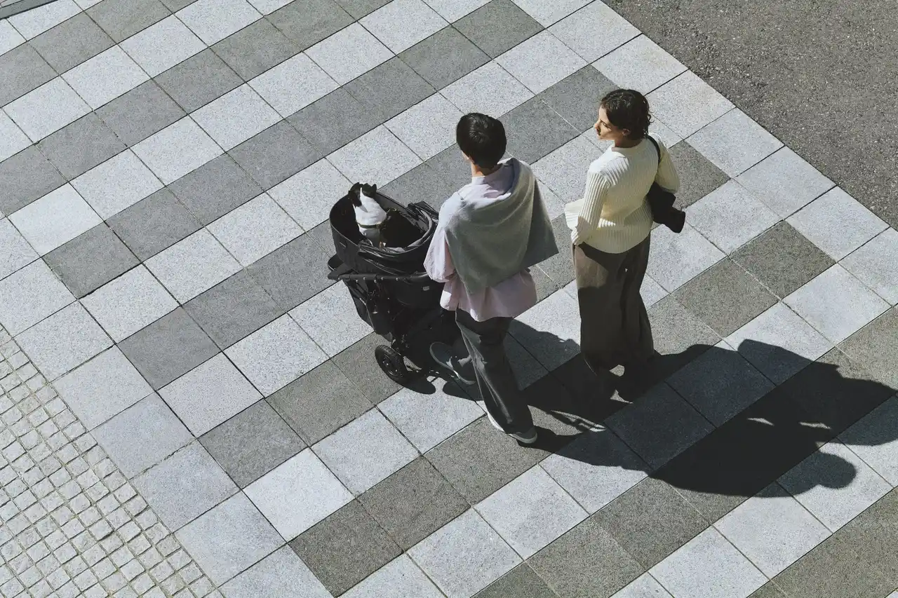 3輪構造のエアタイヤが生み出す“空気のように軽い押し心地”と“なめらかな乗り心地”は、ベビーカー開発で培った技術がベースです。欧州統一安全規格「EN1888-2」に準拠した高い安全性を誇ります。 |