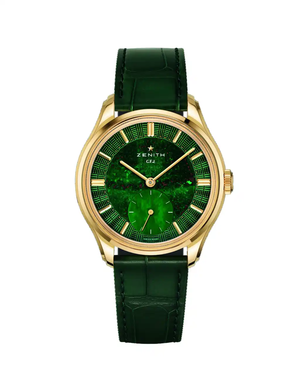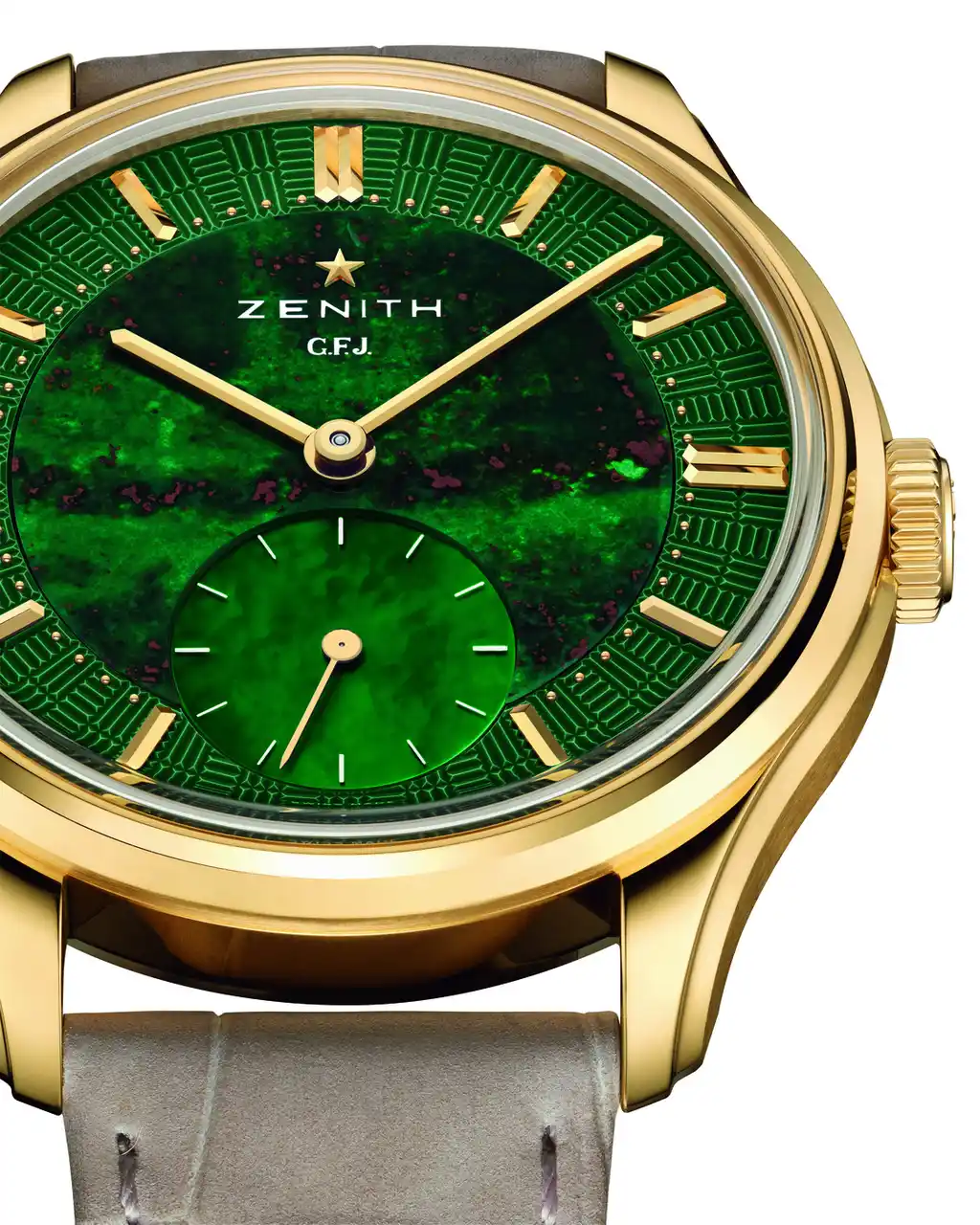 ル・ロックル / ジュネーブ、2026年4月14日:伝説的なキャリバーを蘇らせ、高く評価された「G.F.J.」。クロノメトリーの真髄を追求するこのコレクションに、ゼニスは新たな章を記します。ゼニス創業者、ジョルジュ・ファーブル=ジャコのイニシャルにちなんで名付けられた「G.F.J.」は、単なる復刻モデルではなく、高精度な時計製造の原点回帰を意味します。伝説的キャリバー135に新たな命を吹き込み、2025年のジュネーブ ウォッチ グランプリ(GPHG)でクロノメトリー賞に輝いた「G.F.J.」は、ゼニスが歴史を通じて築いた天文台の計時における専門性を、現代的に表現したタイムピースです。そして今回、ゼニスは161本限定で、印象的なブラッドストーン文字盤を備えたイエローゴールド製の「G.F.J.」を誕生させました。本作は新たな素材の採用という枠を超え、「G.F.J.」が物語を紡ぎ続けるキャリバー135の現代における中心的存在であることを再認識するものです。