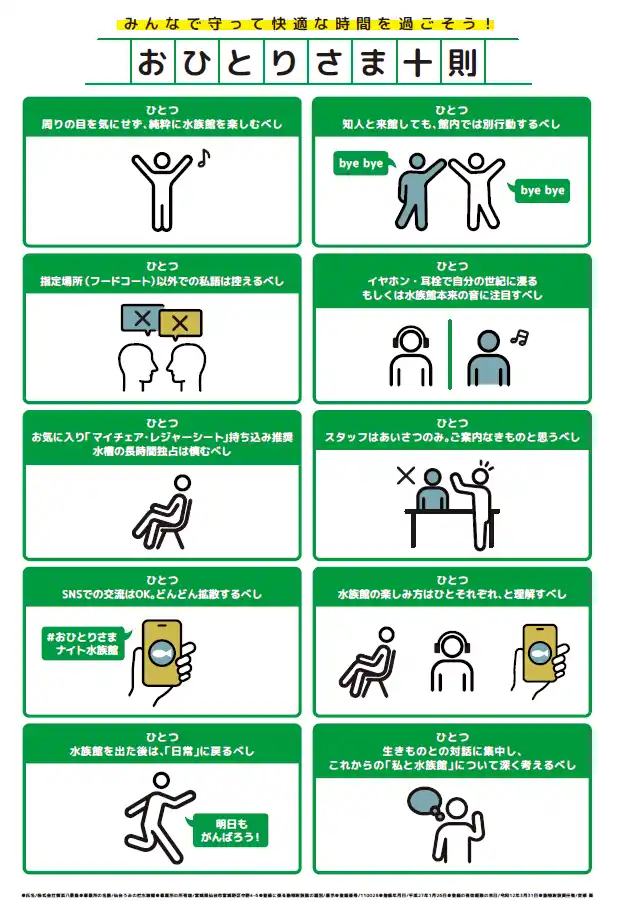 このイベントを心ゆくまでお楽しみいただけるよう設定したルール「おひとりさま十則」や、キャンドル型ライトの装飾などの限定コンテンツにより、「周りの目を気にせずに、ひとりで水族館を楽しめる」と大変好評いただき、今回で15回目の開催です。 |