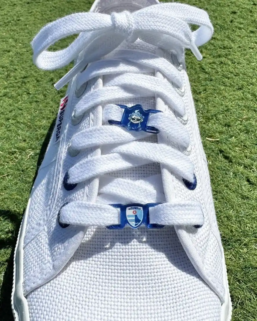 静岡ブルーレヴズのチームカラーであるブルーとホワイトをイメージしたシューレースホール(紐通し部分)が、さりげなくも確かな存在感で、足元からチームへの想いを表現できます。 |