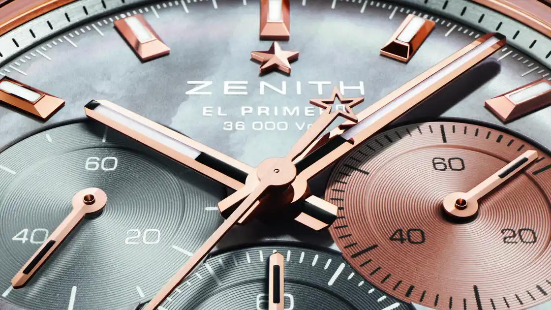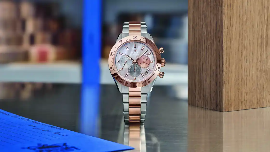 サファイアガラス越しにさりげなく光沢を湛えるマザーオブパールの文字盤は、入念な計算のもと、華美な装飾感が抑えられています。光は文字盤の表面全体を行き来し、時間帯によって印象を少しずつ変化させます。オリジナルのエル・プリメロの系譜に連なる、3時・6時・9時位置の重なり合う象徴的なカウンターはそのままに、ファセットカットを施した針とアプライドインデックスがどのような環境下で |