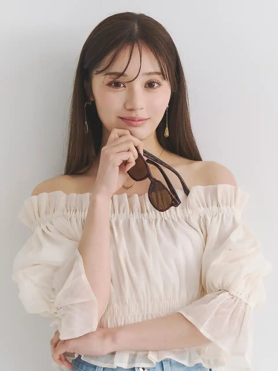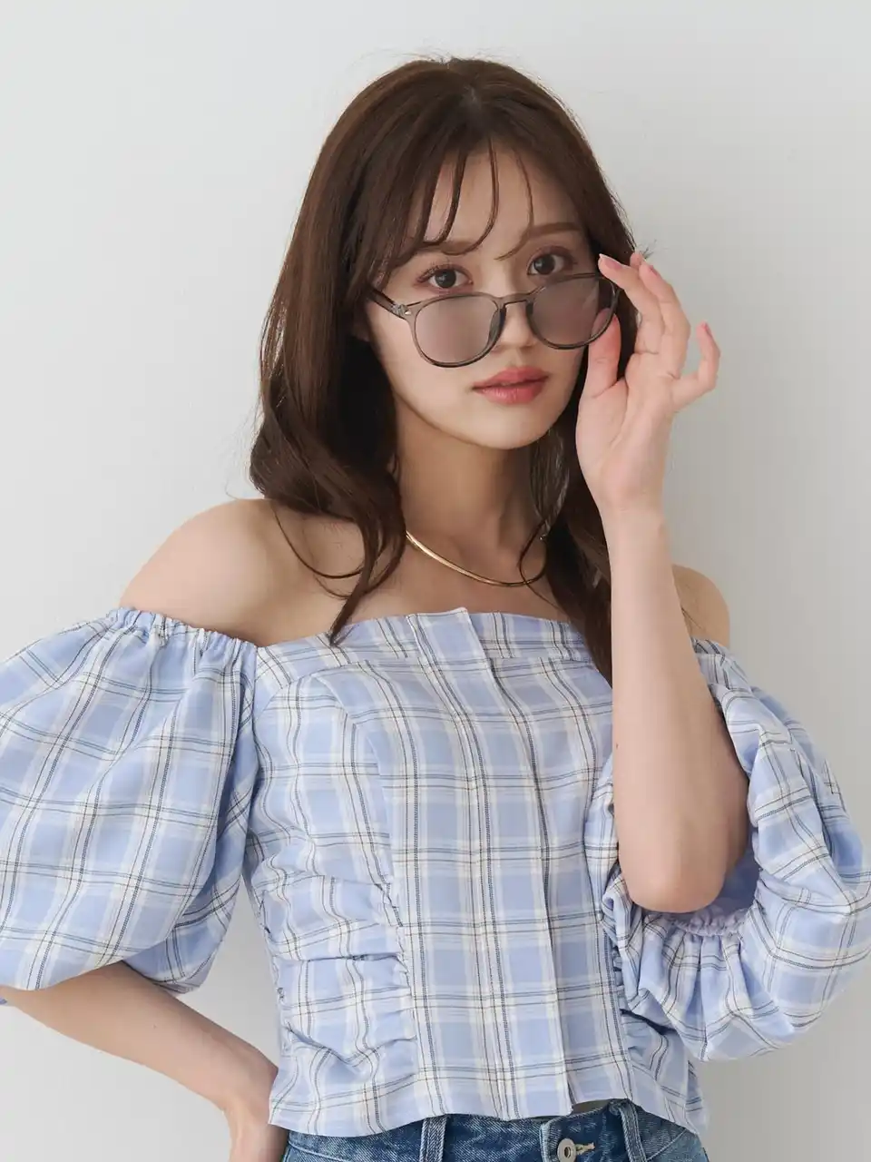 頬にかかる絶妙なサイズ感のフレームが、顔まわりを華やかに演出します。 |