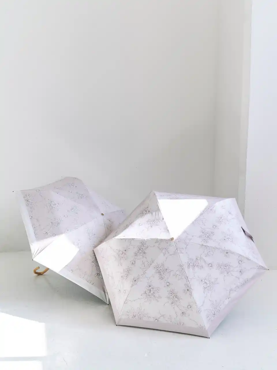 MERCURYDUOを象徴する繊細な花柄プリントが上品な、晴雨兼用の折り畳み傘。 |