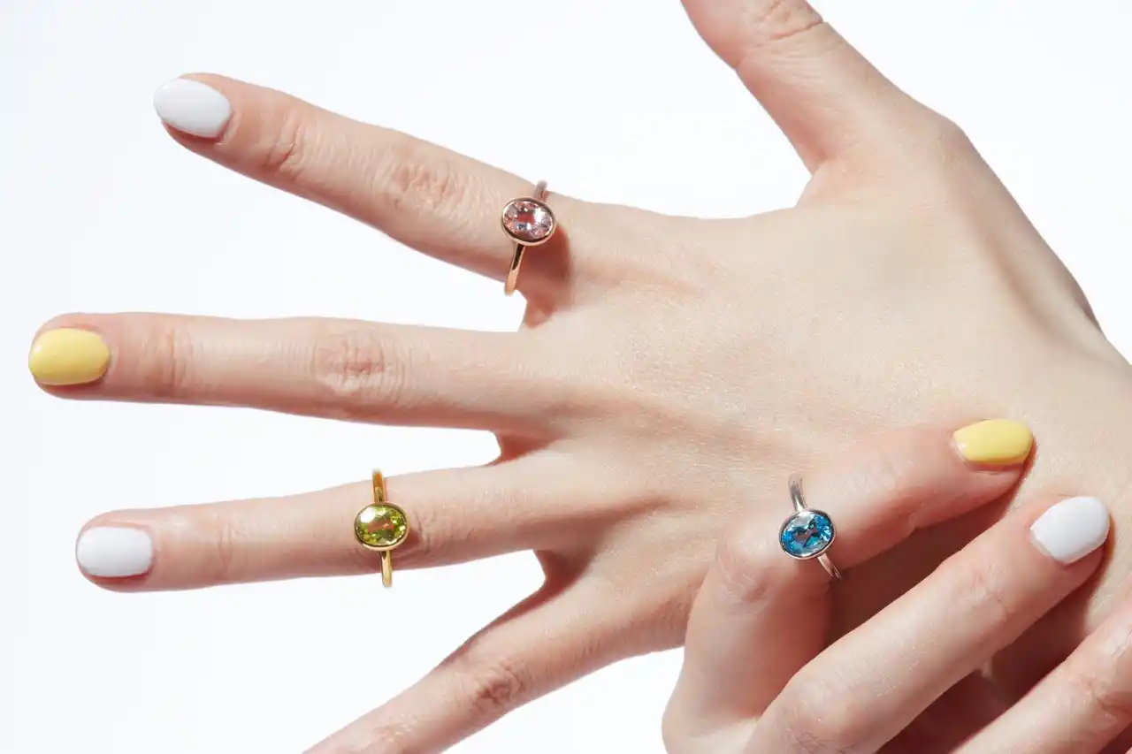 主役となるカラーストーンは、一つひとつ丁寧に選び抜かれたもの。 豊かな色彩と、美しい輝きが、ミニマルなフォルムに奥行きと個性をもたらします。 |