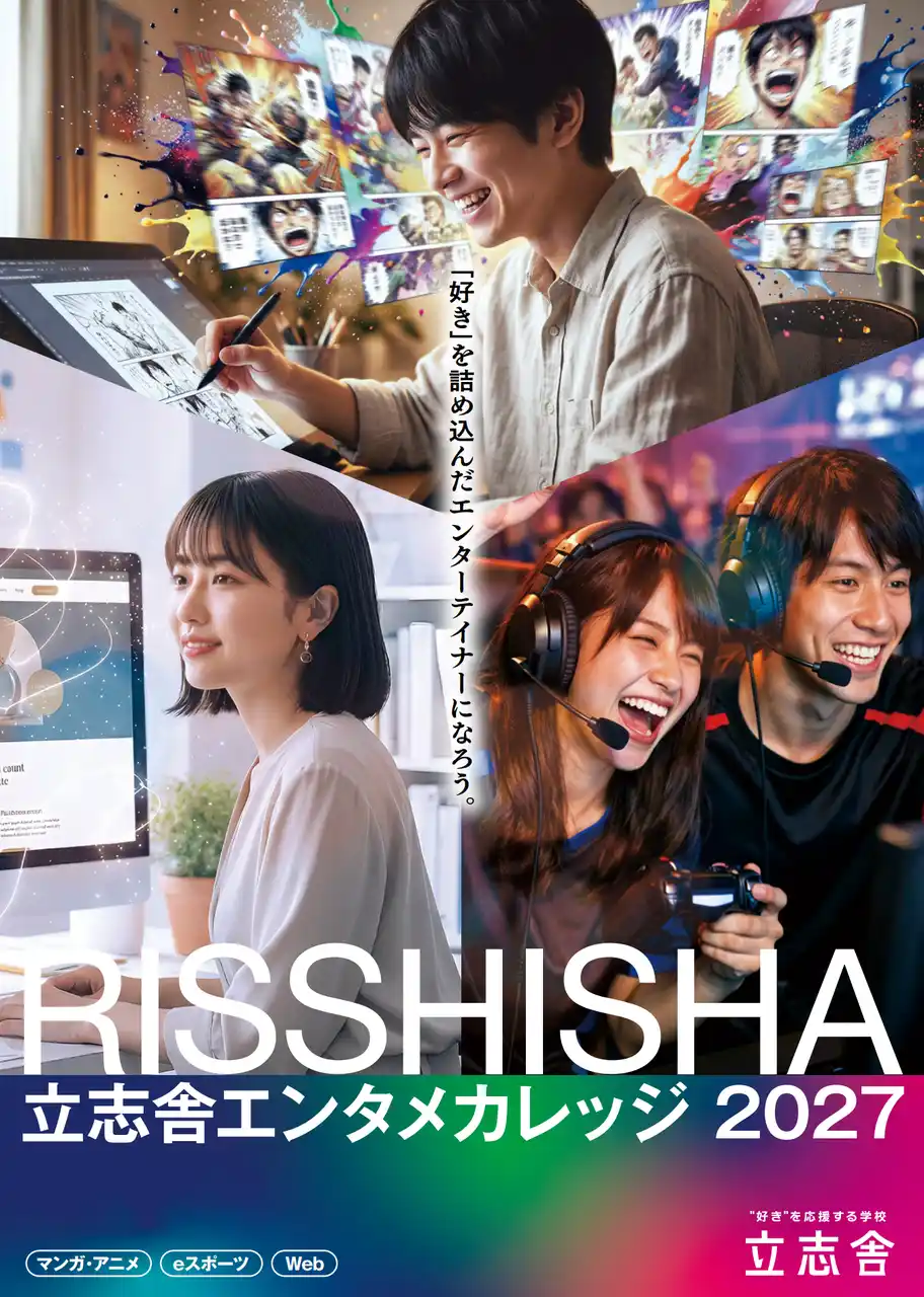 全国に専門学校と高等学校を展開する学校法人立志舎(所在地:東京都墨田区)は、2027年度4月より【マンガ・アニメクリエイション学科】【eスポーツ学科】【webデザインクリエイター学科】を新設(※1)し、「好き」を一生モノの「武器」にするためのカリキュラムをスタートいたします。 |