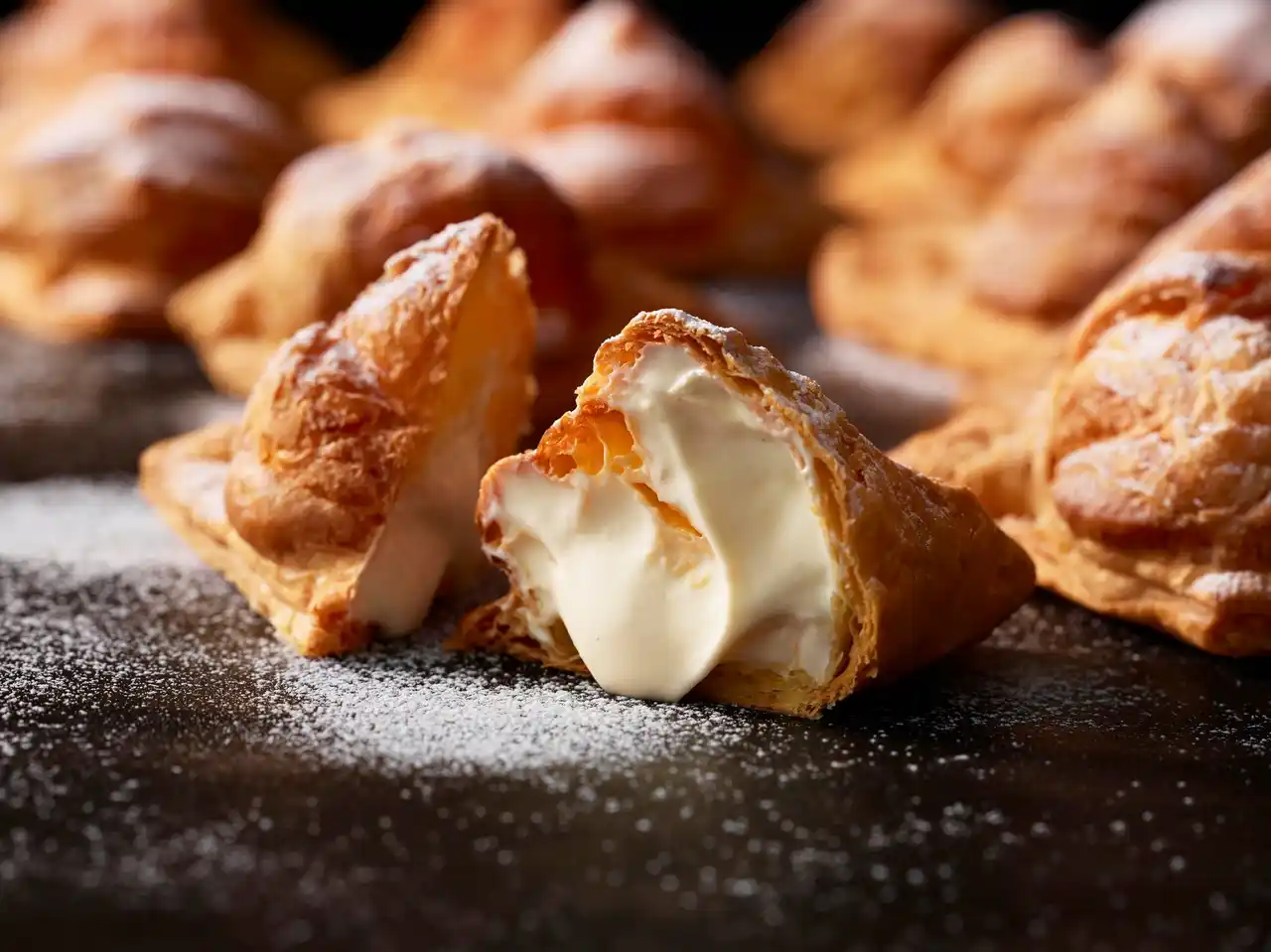 店内のオーブンで焼き上げた”サクサク”のパイに、 北海道製生クリームを使用した特製のミルククリームを詰めました。 |