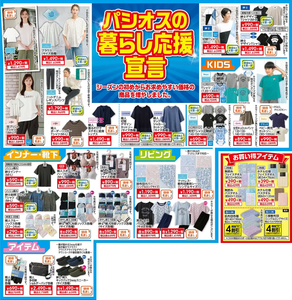 | 4/15(水)より、[パシオスの暮らし応援宣言]の商品を集めた売り出しを実施いたします。 | ||||