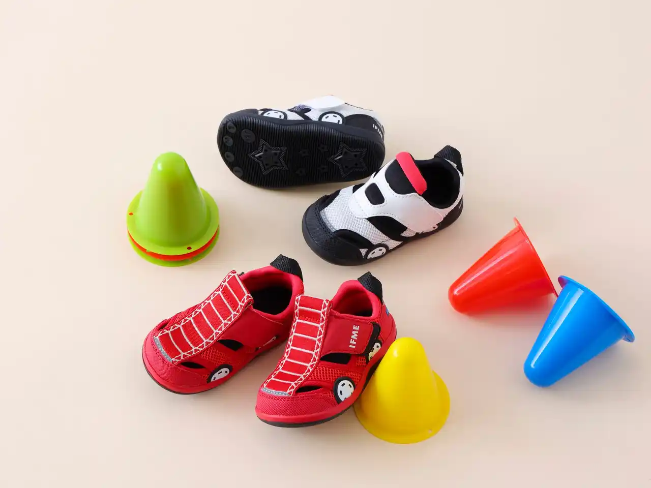 2025年8月の発売以来、大変好評をいただいている「はたらくくるま」をモチーフにした「IFMEのりものシリーズ」から、サマーシューズが初登場!子どもたちに馴染みのあるのりものをサンダルデザインに落とし込み、車好きな子どもたちに向けた商品を展開します。白黒のカラーリングがクールな“パトカー”や、真っ赤な車体にトレードマークのハシゴが目を引く“ハシゴ消防車“を展開。車好きな子どもたちが笑顔になるようなデザインに仕上げました。 |