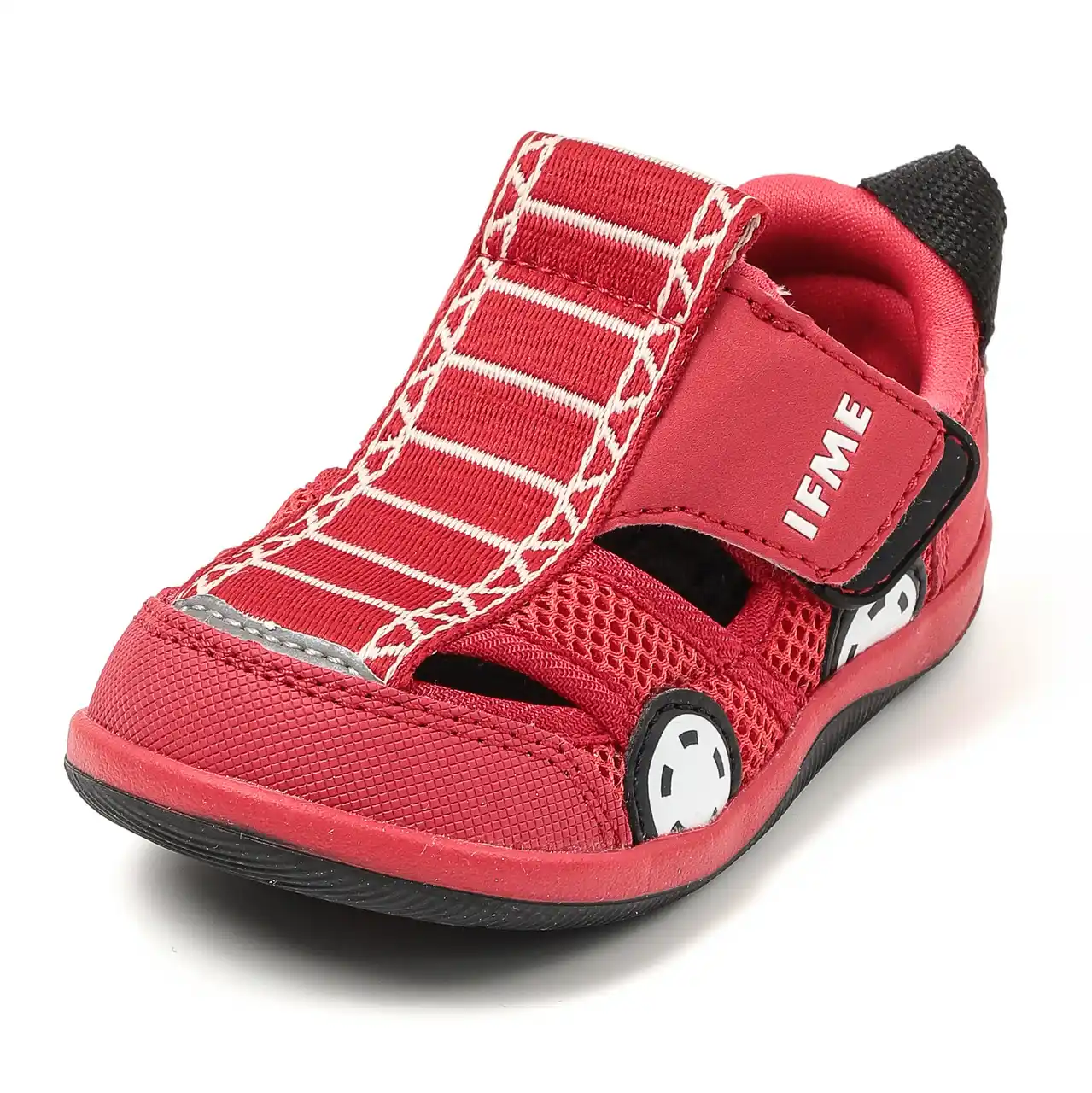 子ども自身での履きやすさに配慮した「アウトサイドストラップ」や、子どもの健やかな足の成長を育むインソール「ウィンドラスソーサー (R)」などIFMEのオリジナル機能を搭載しています。 |