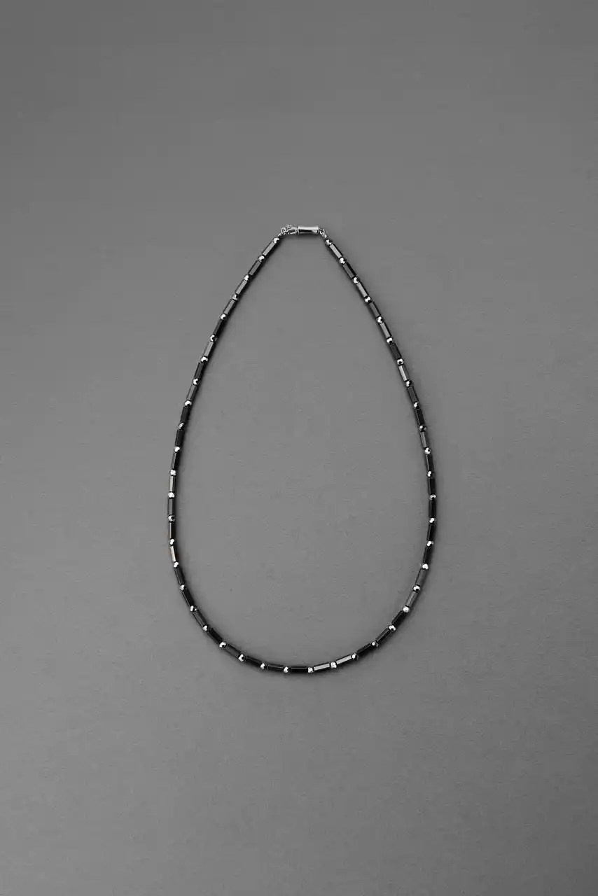 セラミックの光沢とテラ鉱石の輝きが融合し、胸元を艷やかに飾る。高耐性ブラックセラミックのネックレスモデル。 |