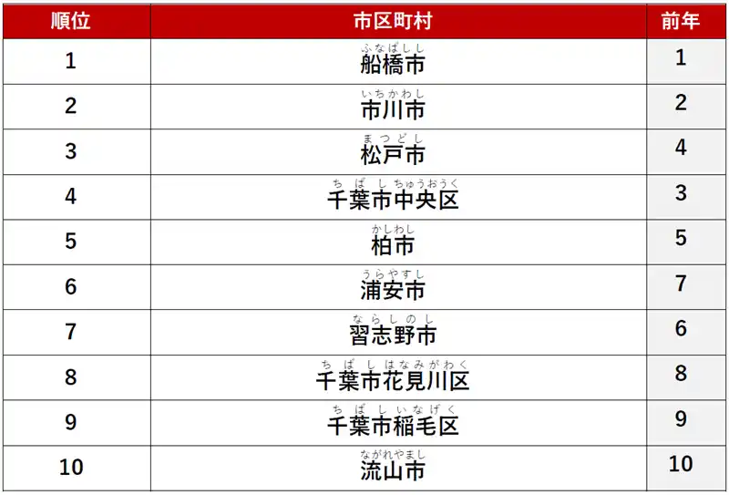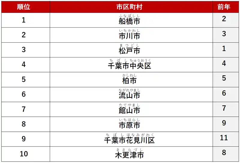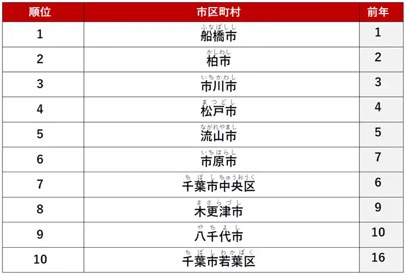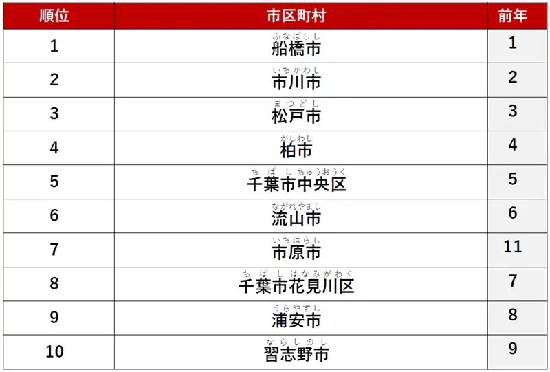 2位に「市川市」、3位に「松戸市」がランクインしました。 |