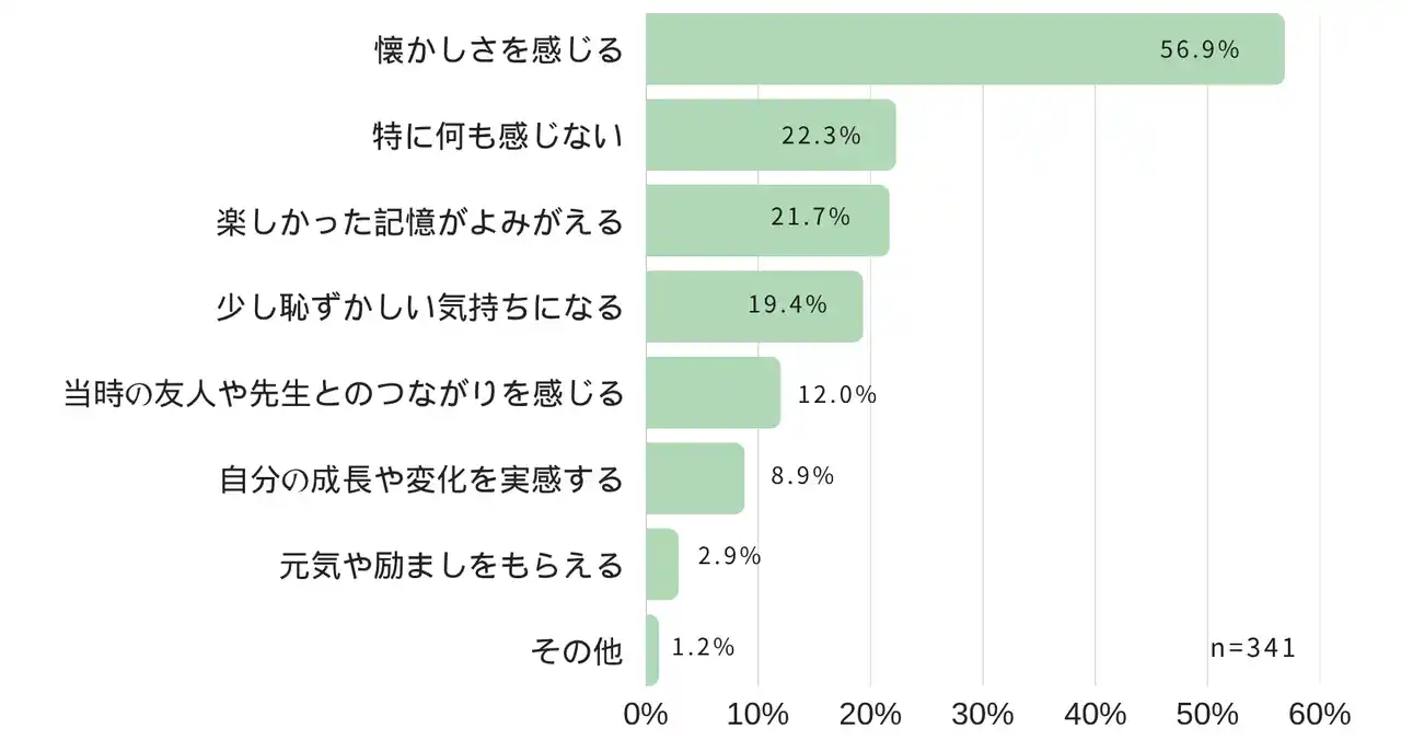 | 多くの方が普段は見返していない一方で、開いた瞬間に当時の記憶や感情がよみがえるという特性も明らかになりました。 | ||||||||||