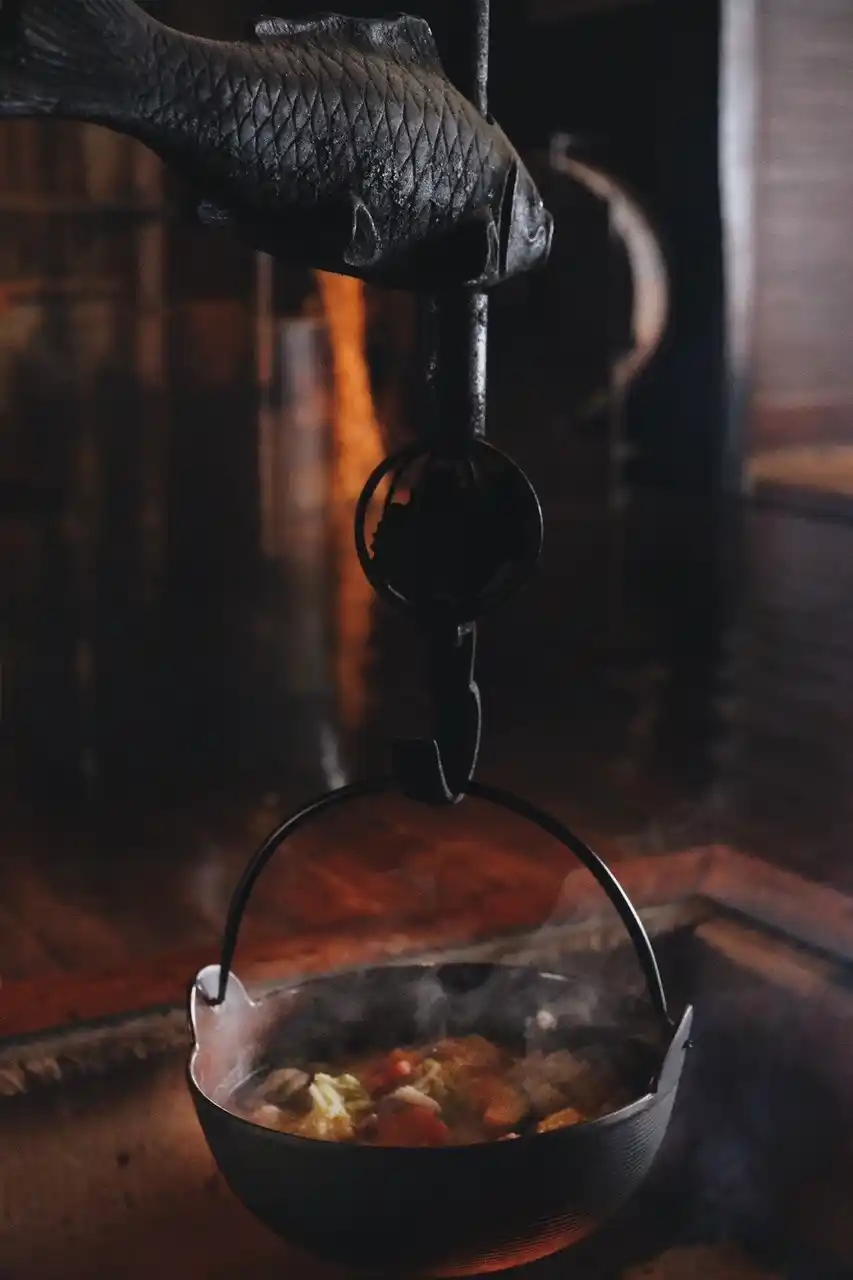 昔ながらの囲炉裏を囲むあたたかな空間の中で、中条地区の郷土料理「おぶっこ」や名物「灰焼きおやき」など、里山ならではの食と文化を体験していただけます。 |