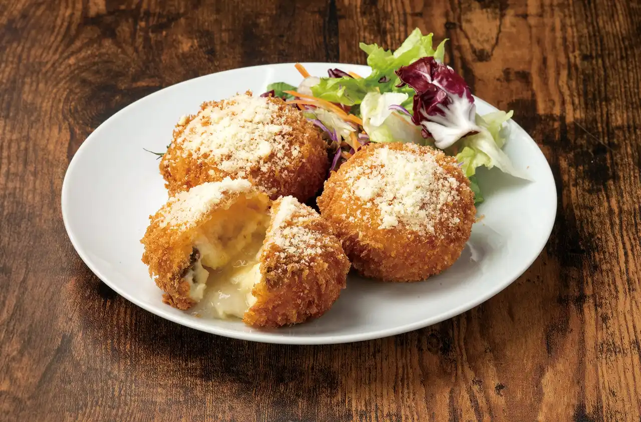 十勝幕別産の北海黄金でカマンベールチーズを包み込んだ風味豊かなコロッケ。求肥入りでもちもち食感! |