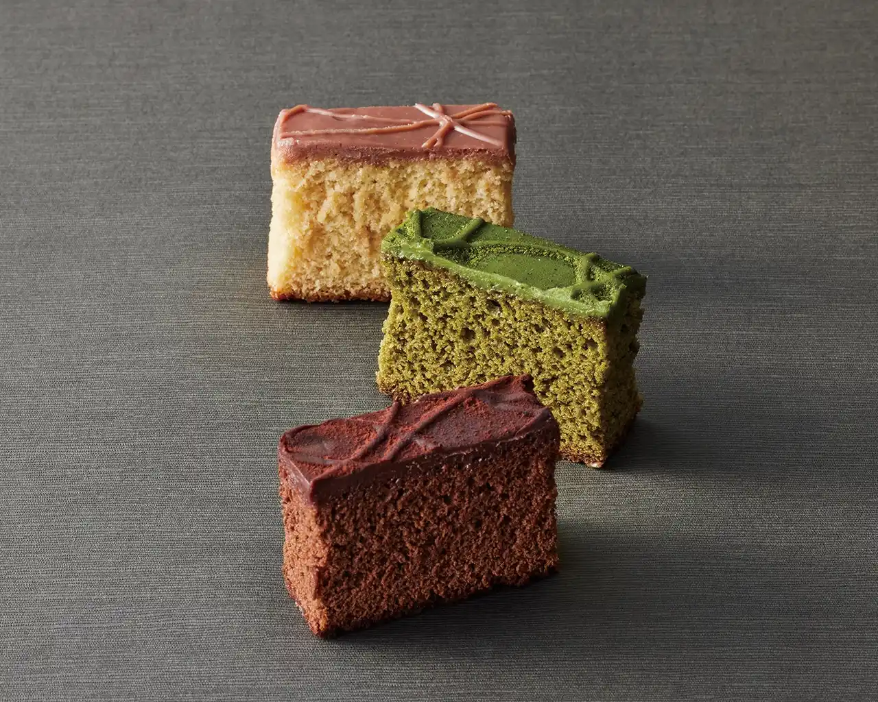 素焚糖を使用し、しっとりと焼き上げたカステラを、ショコラで丁寧にデコレーションしました。やさしい甘さとしっとりとした口あたりに、ショコラのコクが重なり、奥行きのある味わいを楽しめます。 |