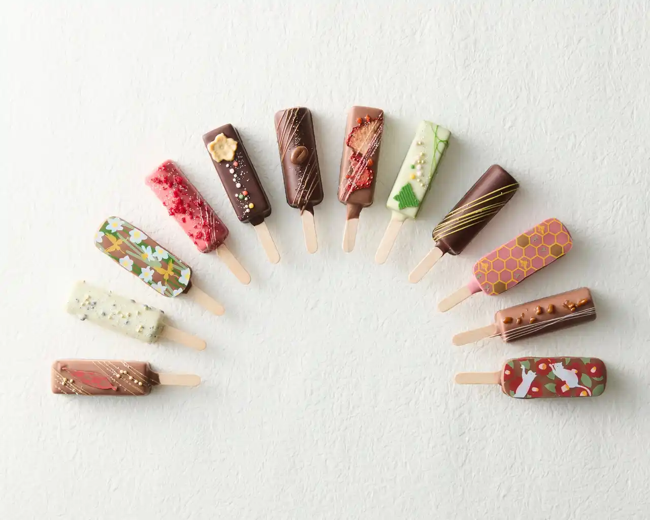 繊細な技術と和の美意識が融合した、美しい彩りのボンボンショコラ。花や鞠をモチーフに、和菓子のような優美なかたちをショコラで表現しました。キャラメルやプラリネを用いた、見た目にも味わいにも華やかさが広がるコレクションです。 |