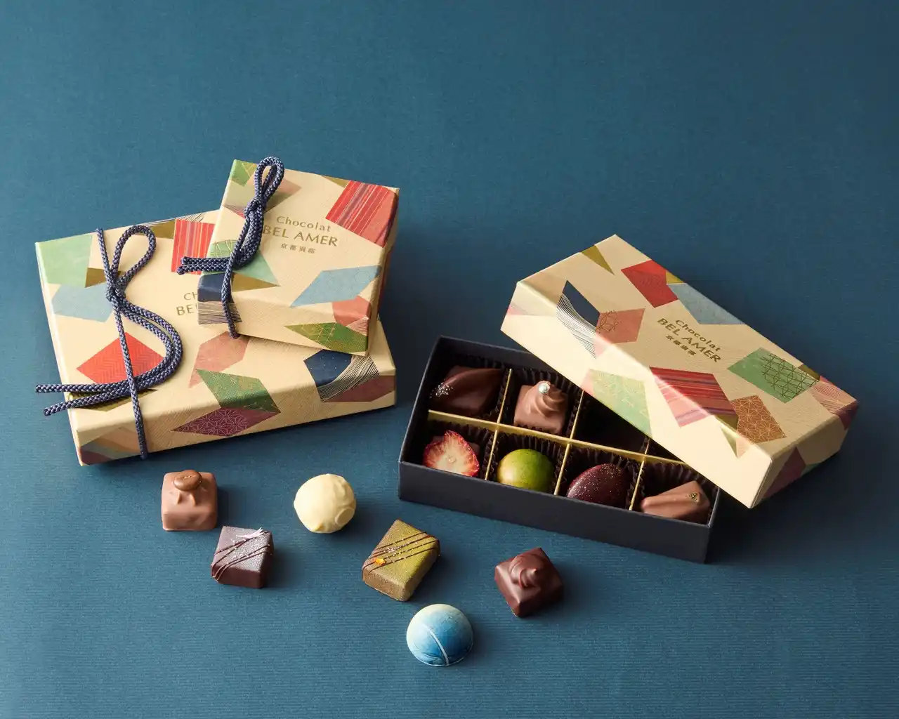 枡型ショコラに、日本各地から厳選した素材をジュレにし、閉じ込めた人気のシリーズです。日本酒やお茶、国産果実と蜂蜜など、豊かな香りと深い味わいが一粒に凝縮されています。春夏の贈り物にも最適で、ひと粒ごとに季節の彩りと奥行きのある風味を感じられます。京都ブランドならではの厳選素材と職人の技が光る、上質で味わい豊かな逸品です。 |