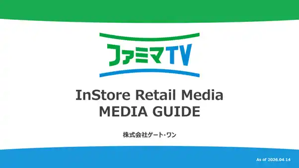 ファミリーマート店舗内(一部地域除く)のリテールメディアを運営している株式会社ゲート・ワン(本社:東京都港区、代表取締役社長CEO:藏田 一郎、以下当社)は、「ファミマTV」を含むすべての店内リテールメディア(レジ液晶、店内放送、カタログラック)の媒体資料およびホームページを更新したことをお知らせいたします。 |