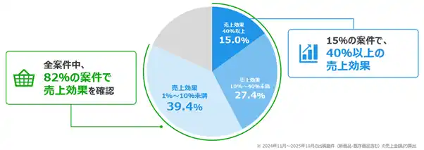 ・売上効果: 全案件中77%の案件の売り上げ効果が82%に向上しました。 |