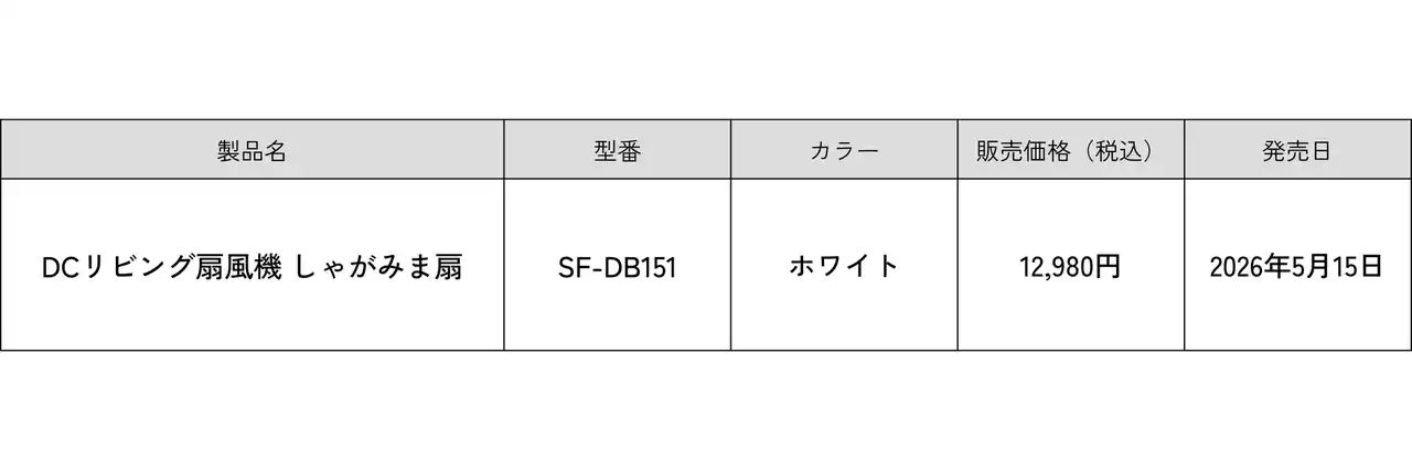 | シロカ株式会社(東京都・千代田区)は、しゃがむことなく、足で軽く触れるだけで基本的な操作ができる扇風機「DCリビング扇風機 しゃがみま扇」を2026年5月15日に発売します。 | ||||||||||||