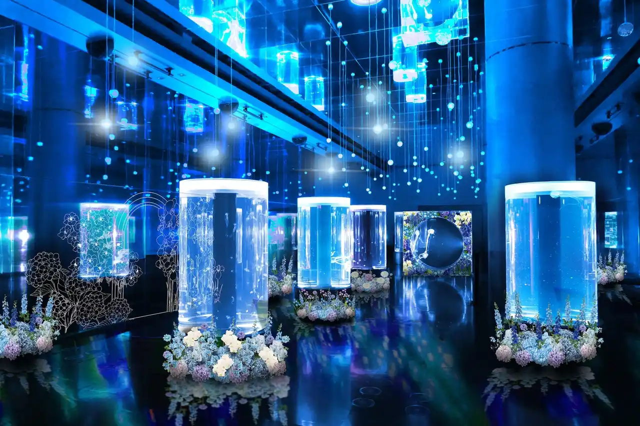 1.涼やかな“青”に彩られた、デジタルフラワーと魚たちの“海のフラワースポット” |