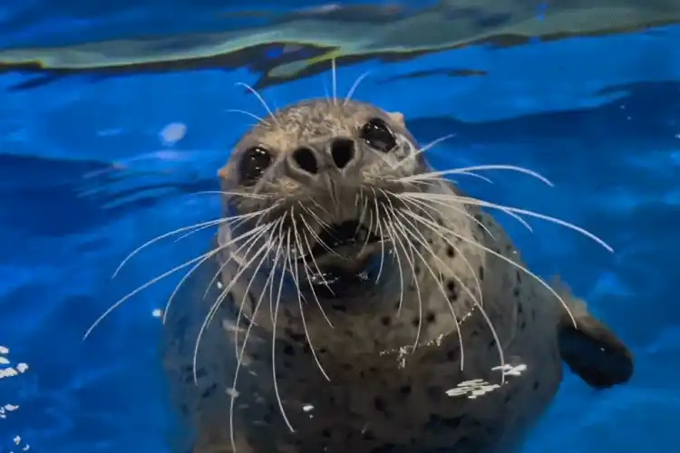 フラワーアクアリウム期間中は、フラワーをテーマにした特別仕様でアザラシのプログラムを開催。“花(はな)”にちなんで“鼻(はな)”に注目し、呼吸や体のしくみをクイズ形式で紹介します。水中から顔を出す瞬間の鼻の動きのほか、昆布を模したアイテムの回収を通してヒレの使い方や海の生態系との関わりも解説。クイズを交えながら、アザラシの驚きの能力と魅力を学べるプログラムです。 |
