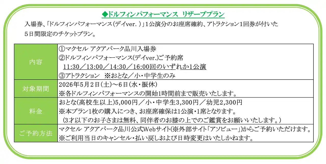 【5月2日(土)~6日(水・振休)】10:00/11:30/13:00/14:30/ |