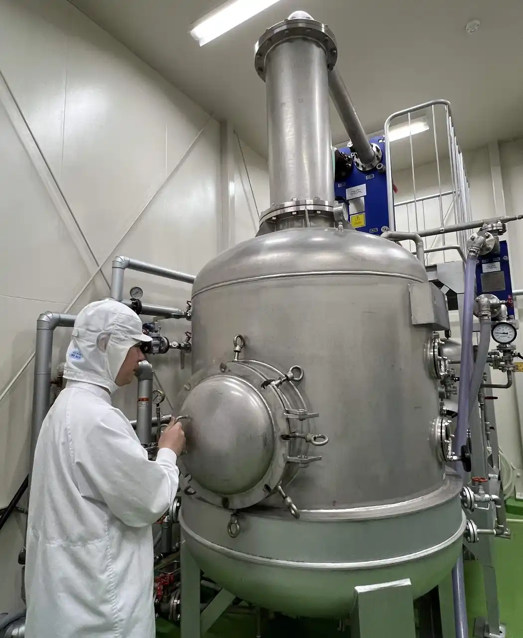 蒸溜設備と製造担当者 |