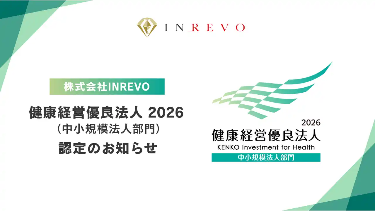 | 株式会社INREVO|従業員負担の軽減と労働時間の適正化に向けた取り組みが認められ、「健康経営優良法人2026」中小規模法人部門で初認定 |