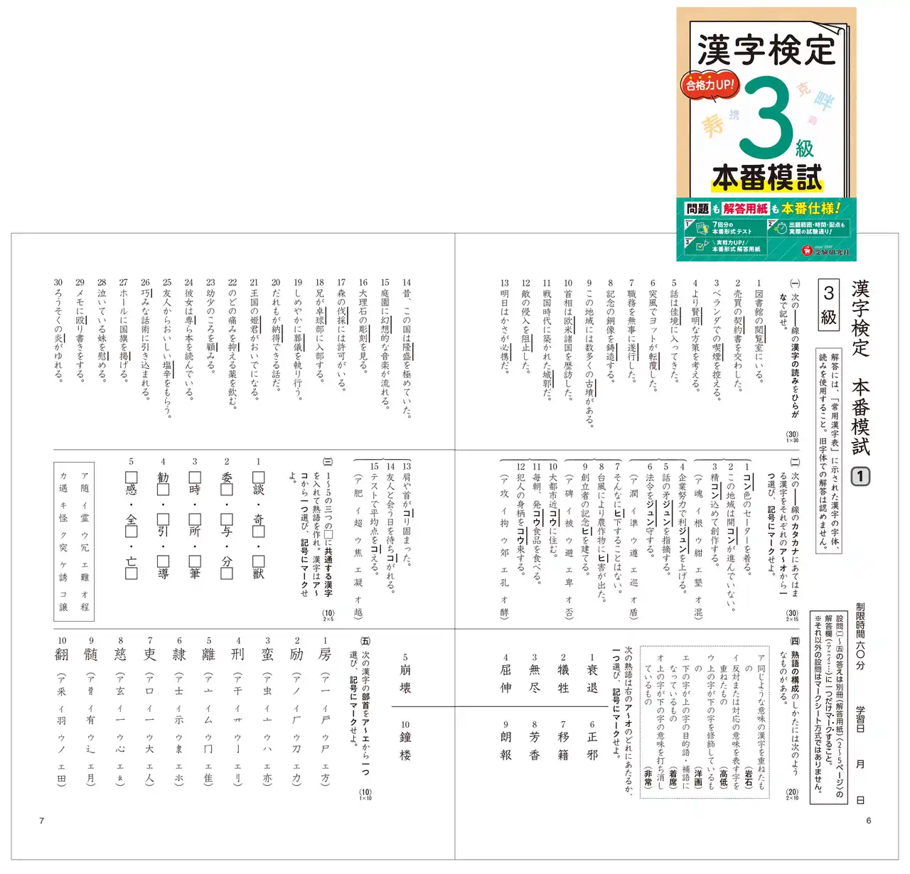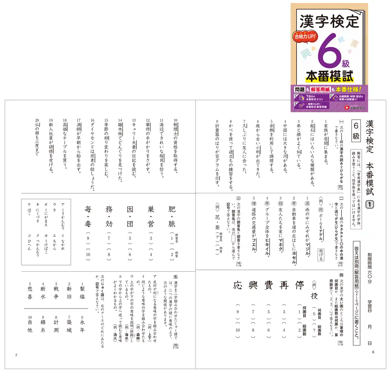 『漢字検定 本番模試』(6級)より |