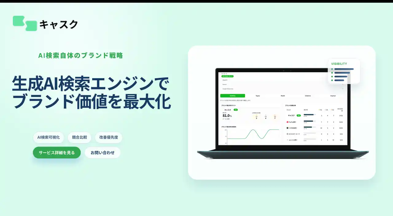 Google AI Overviewに代表されるAI検索の利用が急速に拡大し、企業のブランド名・WebサイトがAIに「引用される」「推薦される」かどうかが、集客や認知に直結する時代が到来しています。 |