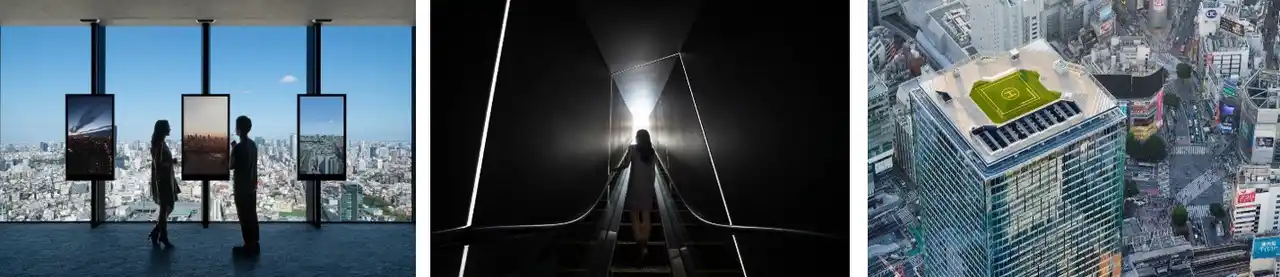 本施設は、14階~45階の移行空間「SKY GATE」、日本最大級の屋上展望空間「SKY STAGE」、46階の屋内展望回廊「SKY GALLERY」の3つのゾーンで構成されています。渋谷最高峰の地上229mから広がる360度の景色を眺めるにとどまらず、一連の体験を通じて知的好奇心を刺激し、想像力を育む展望装置です。 |