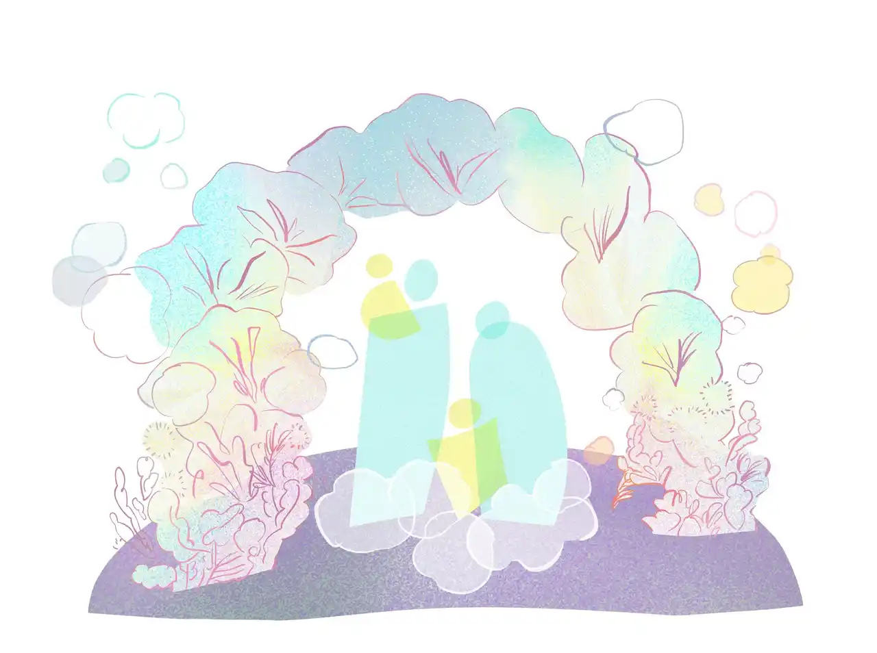 花なのか雲なのか、その境界が曖昧になる空間の中で、視界の奥には実際の空が重なり合います。歩くたびに景色が変わり、立ち止まるたびに異なる空と出会う。ただ「見る」展示ではなく、空と花のあいだを巡る、ここだけの体験をお楽しみください。 |
