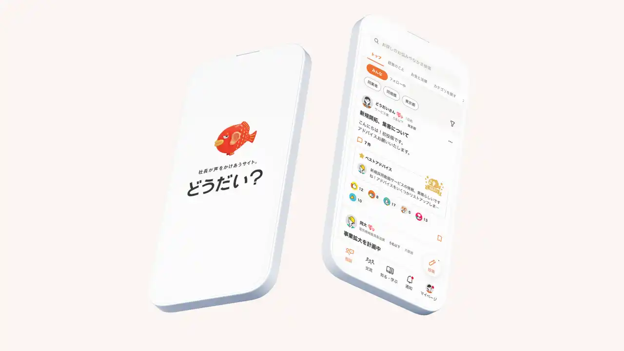 チームラボは、大同生命保険株式会社が提供する、中小企業経営者向けコミュニティサイト「どうだい?」の公式アプリの新規構築において、企画、UI/UX設計、デザイン、フロントエンド開発を一貫して担当しました。