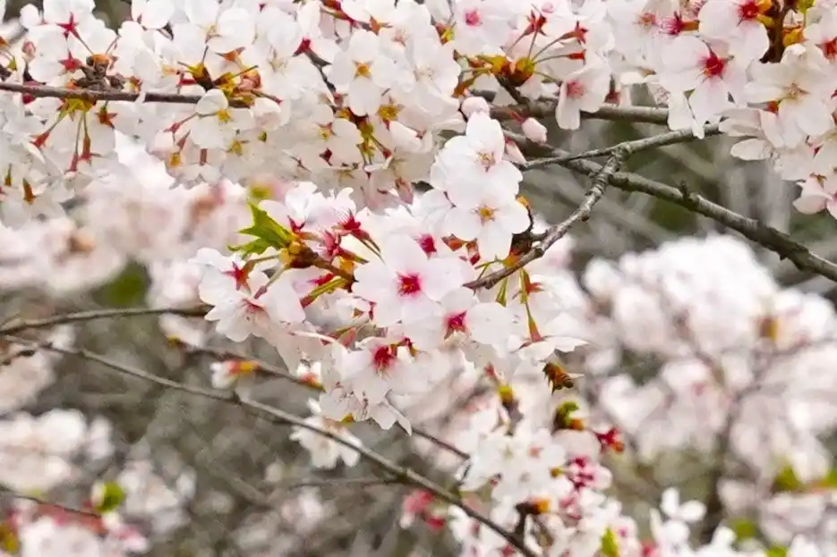 大阪府柏原市では桜が見頃を迎え、やわらかな春の空気の中、ミツバチたちが活発に花を訪れていました。 |