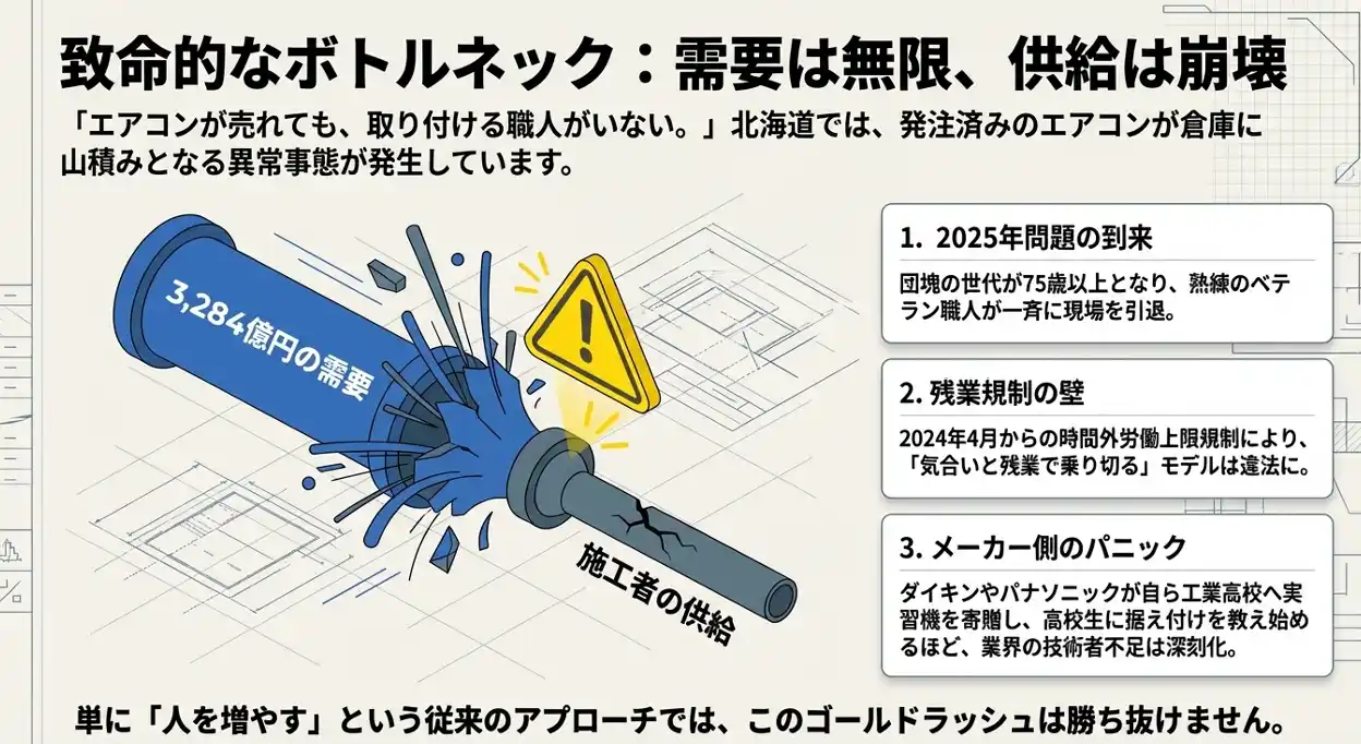 発見2: 業界特有の課題認識 ── 人手不足×高齢化×技術継承 |