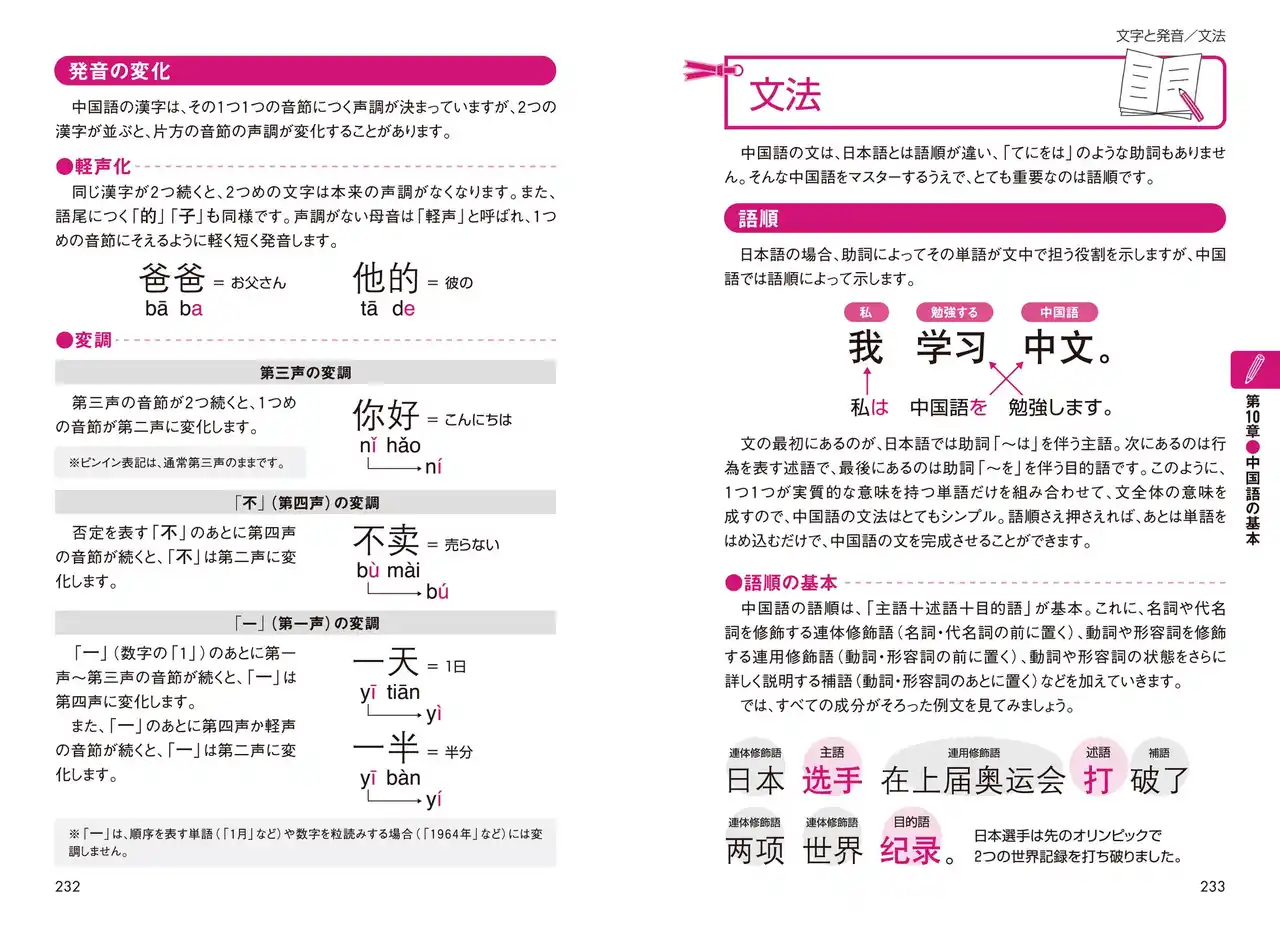 | 本文に対応した音声データがダウンロードできます。スマートフォンやパソコンで、正しい発音を確認でき、通勤・通学時の学習にも便利です。巻末には、最低限知っておきたい中国語の文字と発音、文法をコンパクトに解説しました。 | |||