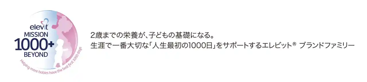 | 受胎から満2歳の誕生日を迎えるまでを数えた1000日間は、子どもの「人生最初の1000日」と呼ばれ、この期間の栄養摂取が将来の健康維持にも重要であると言われています。バイエル薬品は、妊娠前から妊娠期間を通じて栄養をサポートする「エレビット(R) (プレナタルケア)」、「メネビット(R)」、「エレビット(R) 植物性DHA」や、産後・授乳期用に開発したサプリメント「エレビット(R) 産後ケア」の提供により、赤ちゃんを育む産前・産後のママの十分な栄養と子どもの健やかな発育をサポートしています。 | ||||||||||||||||||||