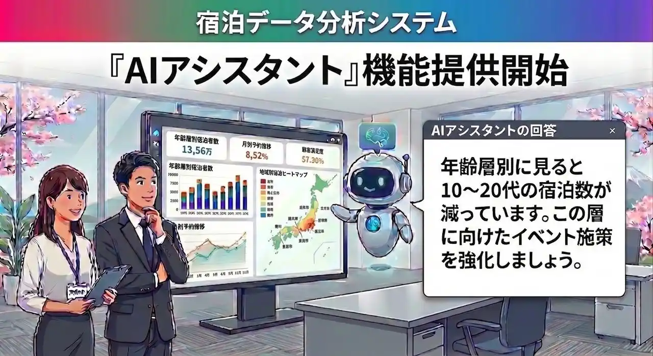株式会社オープントーン(東京都千代田区)は、株式会社JTBと共にDMO・自治体向けに運用している『宿泊データ分析システム』において『AIアシスタント』機能を、2026年4月14日より提供開始。 |