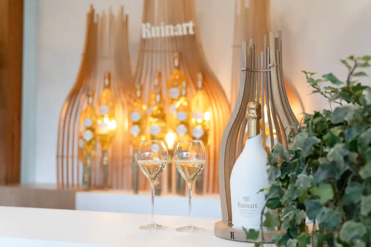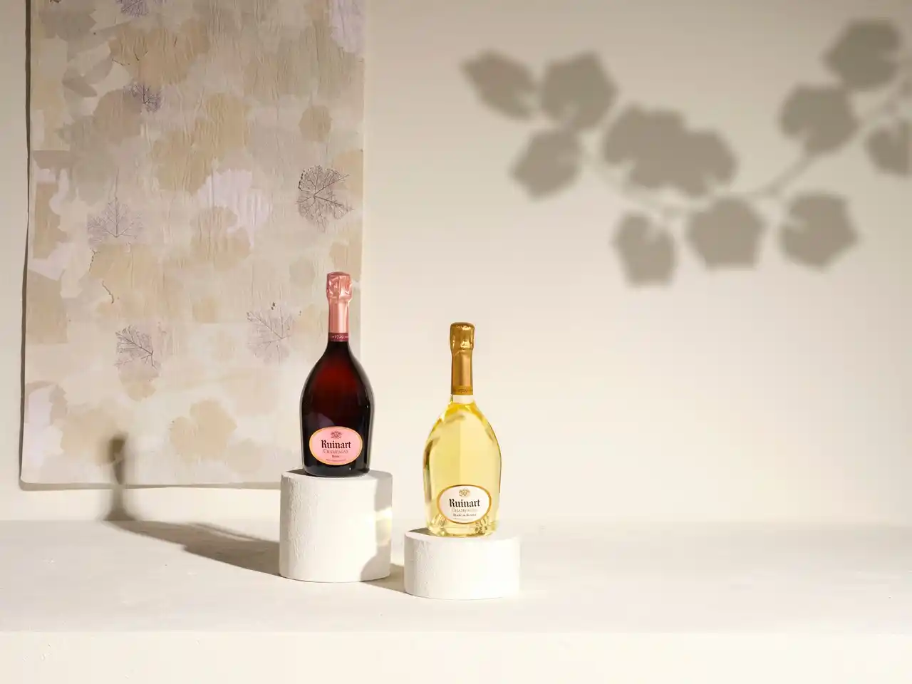 「ルイナールバー」では、メゾンの象徴である「ルイナール ブラン・ド・ブラン」や「ルイナール ロゼ」をグラス及びボトルにて提供。土壌の個性を映し出すシャンパーニュのテイスティングを通じて、アートとワインの奥深い関係性を是非ご体感くださいませ。 |