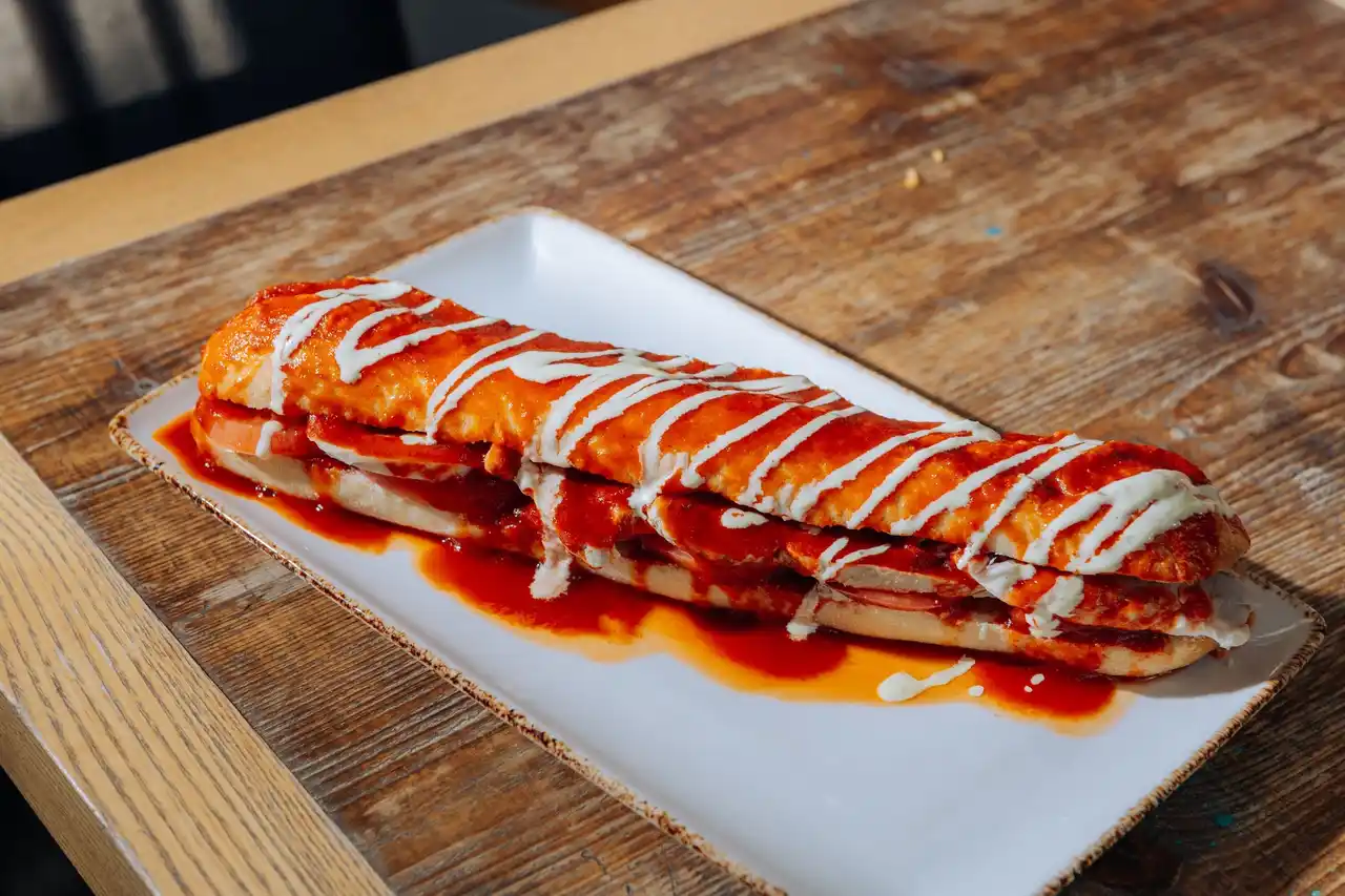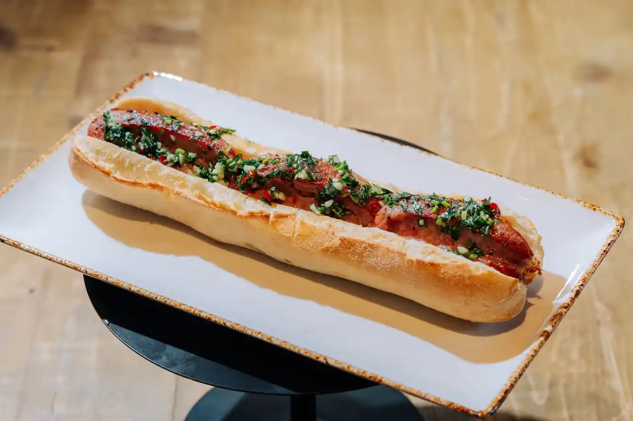 香ばしくグリルしたチョリソーソーセージをパンに挟み、チミチュリやサルサを添えた南米定番のストリートフード。バーベキューや屋台で親しまれる、力強い味わいが特徴。 |