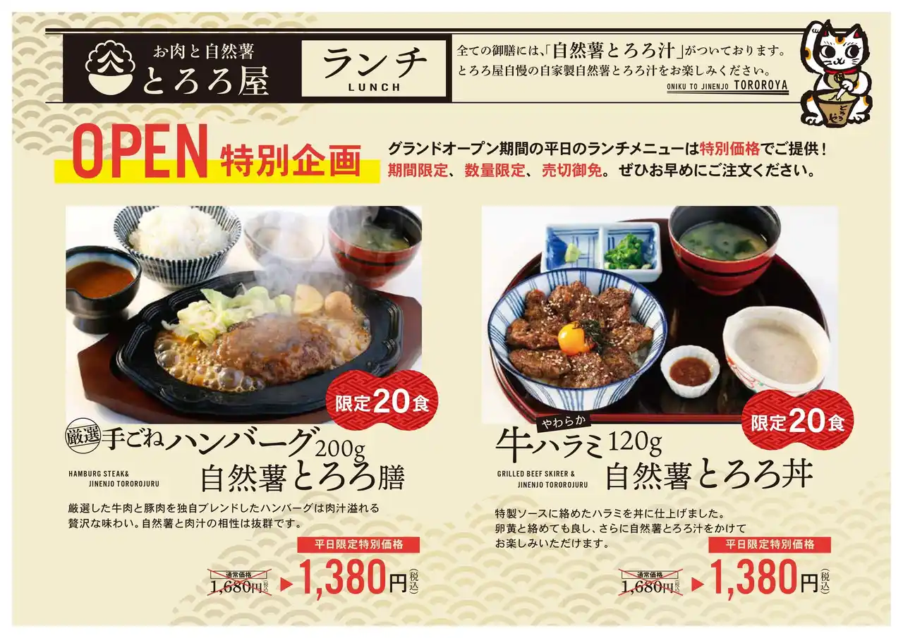 | グランドオープン期間は平日限定特別価格メニューキャンペーンも実施予定 | ||||||||||||||