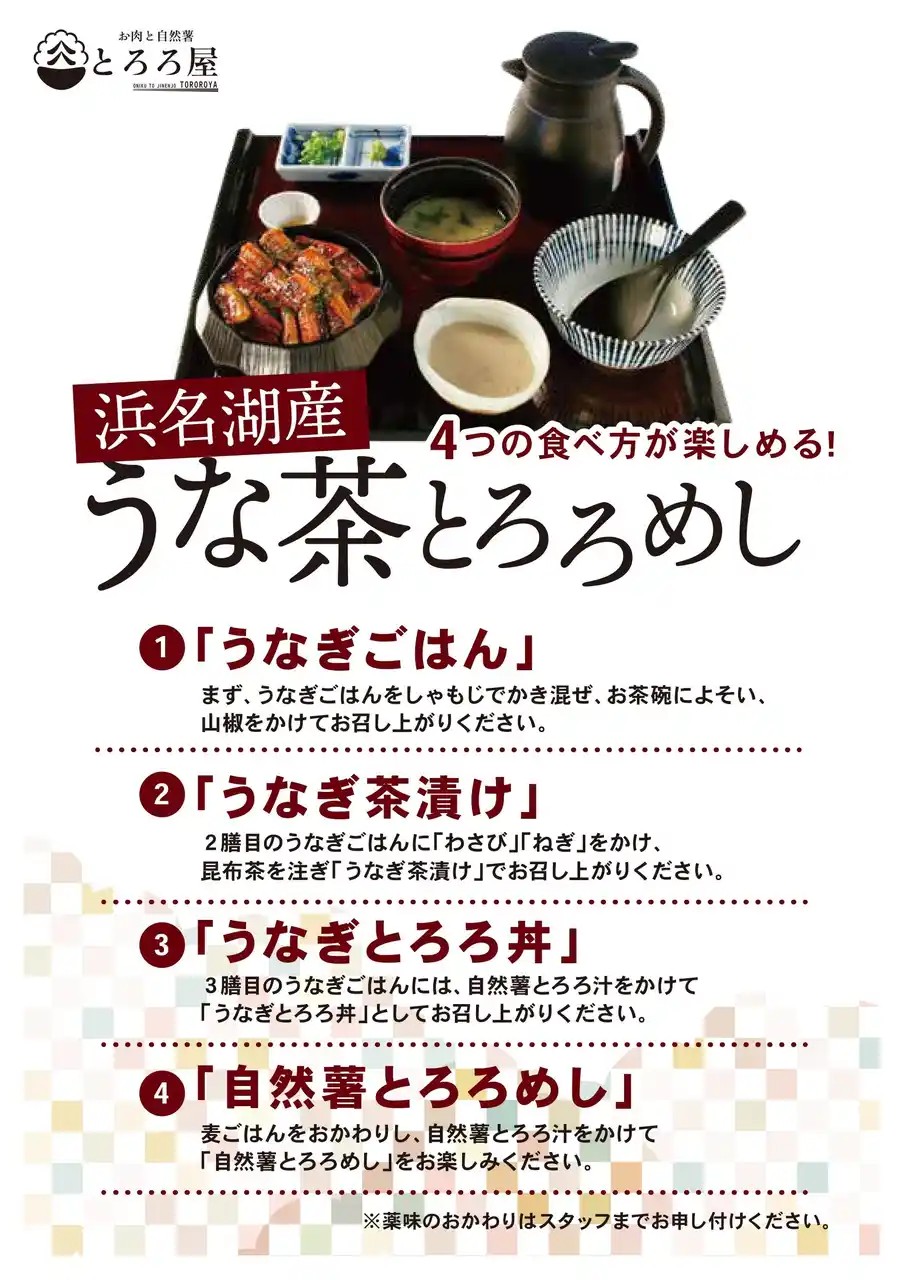 | 浜名湖鰻×自然薯の「ひつまぶし定食」、サブメニューとして、静岡の食材を活かした逸品も展開します。 | ||||||||||||||