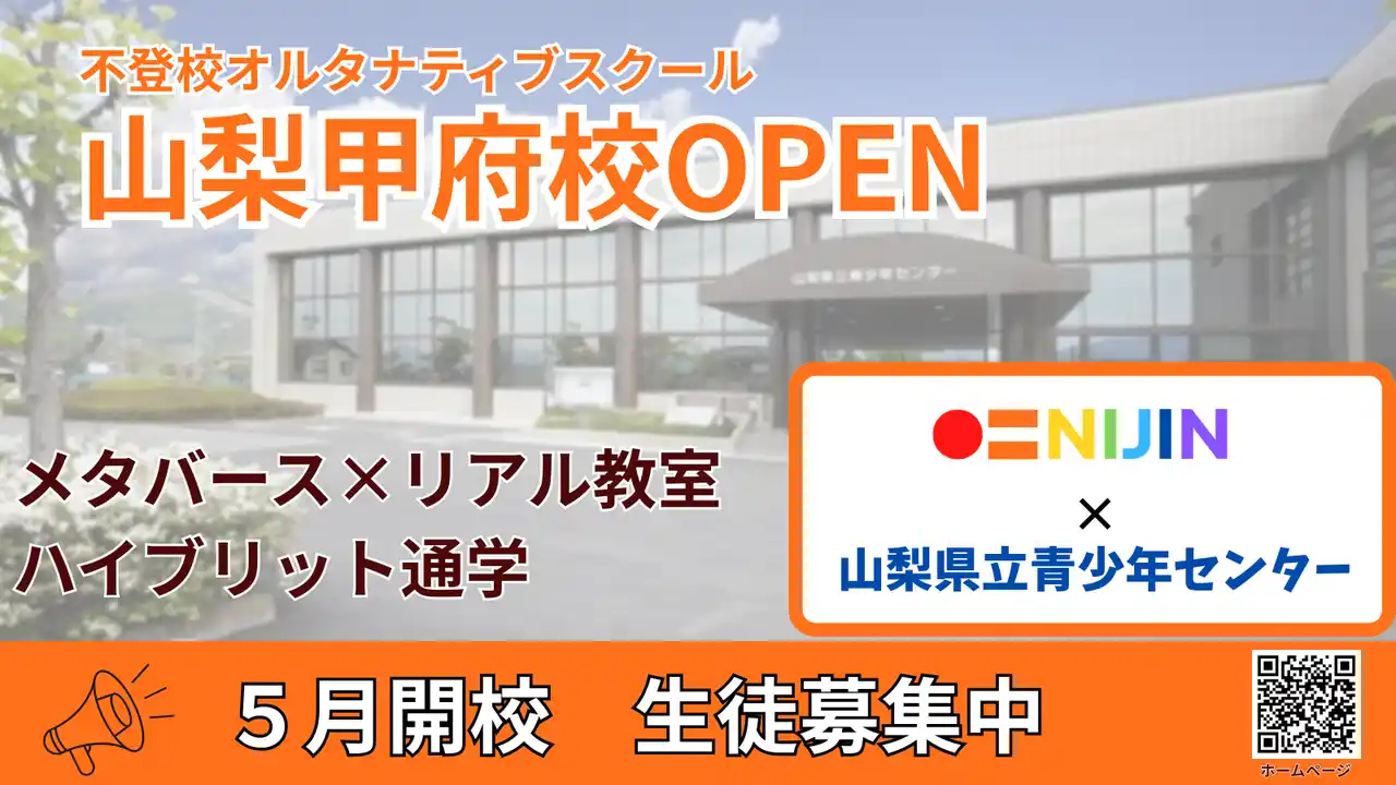 株式会社NIJIN(本社:東京都江東区、代表取締役:星野達郎)が運営する不登校オルタナティブスクール『NIJINアカデミー』はこの度、リアル教室として『NIJINアカデミー』における山梨県初となる山梨甲府校を開校することをお知らせいたします。 |