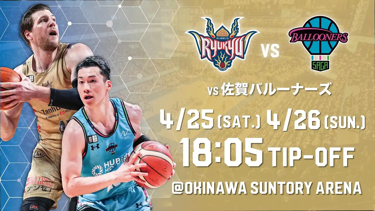 今季レギュラーシーズン最後のホーム戦となる4月25日(土),26日(日)は、佐賀バルーナーズを沖縄サントリーアリーナへ迎えます。 |