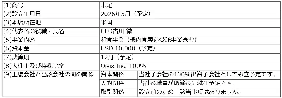■新たに設立予定の孫会社の概要 |