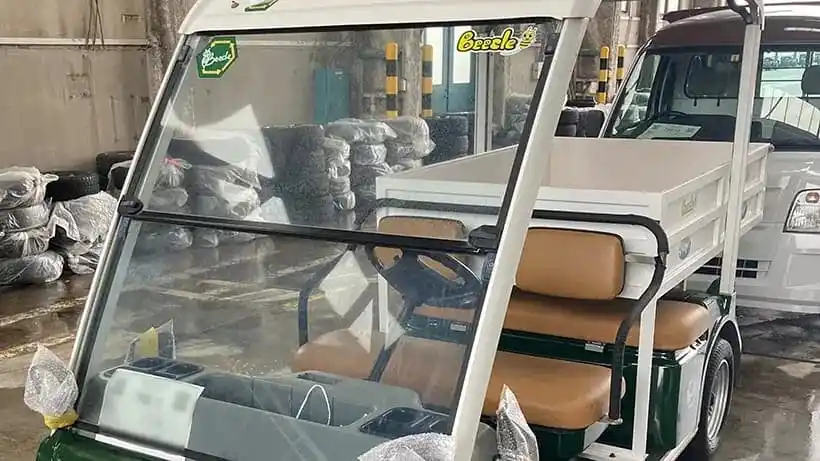 Beecle(ビークル)は軽トラックに替わる新たな電動サービスカートです。使われなくなった中古の電動ゴルフカートをリユースし、船員の健康と自然環境の保護に貢献します。 |