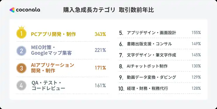 PCアプリ開発・AI実装が300%超の急成長。上場企業でも利用が進む外部人材活用の最新トレンド