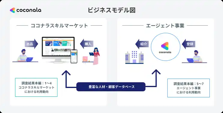 本調査では、1~4を『ココナラスキルマーケット』、5~7をエージェント事業における利用動向としてまとめました。 |