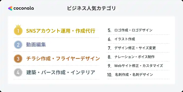2.ココナラスキルマーケット:ビジネス人気カテゴリ |